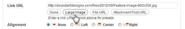 Usually when an image thumbnail is inserted into a post, I would like the thumbnail to link to the large version of the image, not the full-size version. Often the original full-size version is straight from a user’s high-megapixel camera and takes a while to load, while the large version has been automatically downsized by WordPress according to its media settings and works beautifully with a lightbox plugin or script.