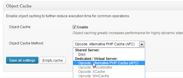 I highly recommend using the powerful W3 Total Cache WordPress plugin for enhancing the speed of your WordPress site. Because I’m running on a MediaTemple dedicated virtual (dv) 4.0 server, I wanted to try harnessing the power of APC (Alternative PHP Cache) as an opcode cache to speed things up!