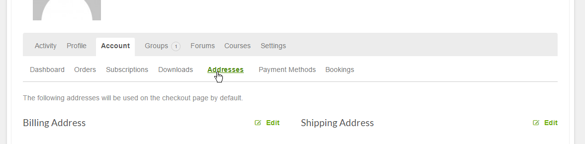 - Point the WooCommerce “Edit Account” URL to the BuddyPress “Account Settings” page